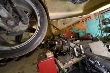 Et puis avec un autre complice, Stéphane Martin, il ouvre le 1er avril 1997 : Vortex ! Tuning, pas vraiment le genre de la maison ! Ici on préfère concentrer son talent sur la préparation et la customisation de motos ou la restauration de MGB, Morgan, Corvette, Aston Martin, Jaguar type E, tous ces top-modèles au galbe souverain qui n’ont pas fini de nous faire rêver…