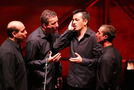 Si le groupe puise son inspiration au plus profond de la tradition, c’est par ses créations contemporaines qu’il se distingue aujourd’hui : un art savamment peaufiné au fil des chemins musicaux empruntés, avec une recherche harmonique nouvelle. Ce parcours à travers différentes facettes du chant insulaire est tour à tour intimiste et puissant, sensuel et viril. Les chanteurs nous livrent un répertoire profondément enraciné à une terre source d’inspiration, mais aussi résolument tourné vers ce siècle qui commence, une tradition toujours en mouvement refusant de se laisser enfermer. Le tour de chant s’appuie sur le Sacré, indissociable de la polyphonie corse, dont le dénuement et la sincérité touche à ce que nous avons de plus intime, pour aller chercher au fil des chants une légèreté et une fraicheur inédite. Même si l’émotion est présente tout au long de ce voyage musical, elle se décline en une multitude de sentiments et c’est avec beaucoup de bonheur que l’on sort de cette expérience. Les quatre chanteurs ont su raconter leur histoire et nous faire vibrer tout au long du récital, partageant leur aventure humaine, qui réveille parfois en nous des sensations oubliées.