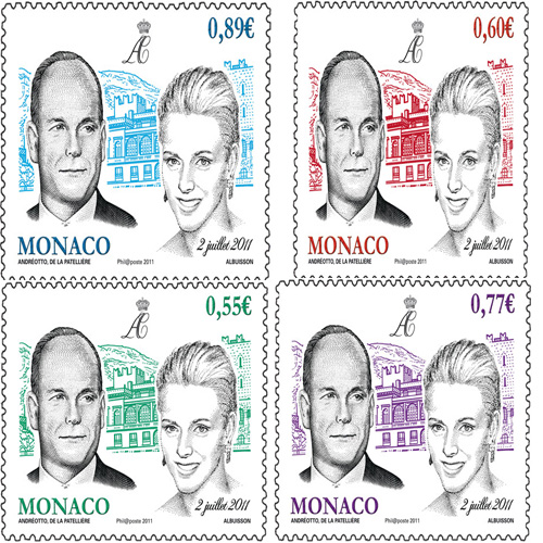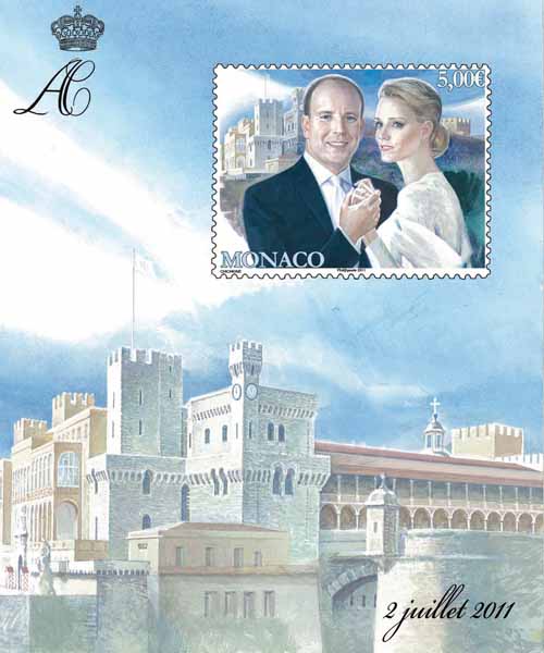 A l’occasion du mariage de S.A.S le prince Albert II avec Melle Charlène Wittstock, L’office des Emissions de Timbres postes de Monaco émettra le 1er juillet 2011 cinq timbres et un bloc qui seront vendus à Monaco les 1er et 2 juillet au musée des Timbres et des Monnaies.