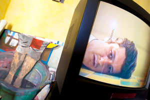 Dés lors le pathos sera au cœur de son travail. La lucidité est ce qui sert à l’homme à mesurer l’étendue de son malheur alors Tilo pour évaluer le fond des océans a recours à un truc infaillible : la chute.. Ainsi dans ces dessins, peintures ou vidéos on le verra la tête posée sur une toile cirée comme sur un billot, une bougie d’anniversaire allumée dans l’oreille (jamais solet dau buòn/ Jamais vraiment seul) posant pour la postérité avec un pigeon sur le crâne « afin de pasticher ces grands hommes qui servent dans les jardins d’états de reposoir à volatiles et dont la figure finit maculé de guano » ; Ou encore jouer au binto avec deux patates et sa quéquette sans jamais parvenir à la retrouver sous les trois godets ?