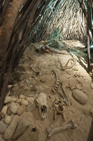 Ce n’était pas un habitat permanent car on n’a retrouvé aucun ossement humain - seulement la dent de lait d’un enfant - mais on sait par contre qu’ils sont venus 29 fois occuper les lieux, pour y chasser éléphants et rhinocéros, daims et cerfs, sangliers et aurochs qu’il faut imaginer présents en grand nombre dans la région.