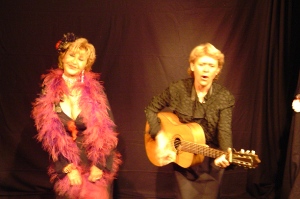 "Oui, tout à fait. Ce n’était pas prévu. Une semaine avant de venir jouer le spectacle, les affiches étaient prêtes puis une après-midi où je devais travailler, j’ai dû m’occuper de mon petit-fils : séance de travail annulée. Claire est venue avec sa guitare, j’ai tout de suite adhéré à ses textes, on a donc écrit une pièce. C’est plus festif, plus approprié, on fait donc moitié chansons, moitié sketches. Comme ça c’est décidé au dernier moment, on a écrit un petit fil rouge et voilà le résultat…