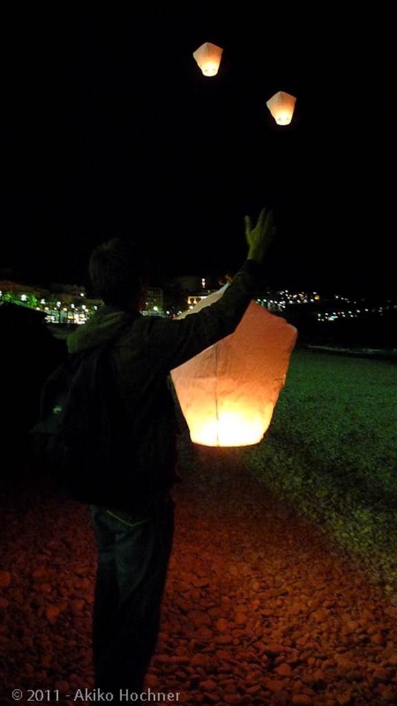 Le public était nombreux et ému devant ses bulles de lumières chargées d’émotions. Les étudiants niçois nous ont ainsi donné une belle leçon de solidarité : « Tout seul on change les choses, ensemble c’est le monde que nous changeons ». Car dans la pure tradition japonaise, il s’agit de faire un vœu et de laisser la lanterne s’envoler…
