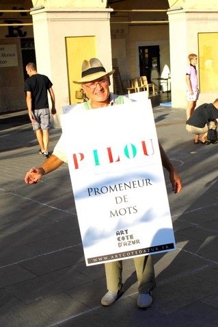 Depuis, dans le cadre des ses Performas, il promène le mot « pilou » dans les rue de Nice à l’occasion des évènements pilouistiques, comme aux Tournois du Vieux Nice, chaque année à la San Bertoumieu.