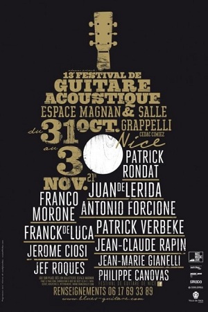 Mélange de guitare acoustique et électrique pour la 13ème édition du festival, qui se veut toujours tourné vers l’originalité, la diversité et la découverte. Il se tiendra du 31 Octobre au 3 Novembre 2012 à l’Espace Magnan et à la Salle Grappelli, à Nice.