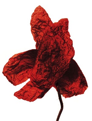 Ses images toujours très simples sur fond blanc ou noir révèlent le caractère précieux et unique de chacun des sujets photographiés. La délicatesse d’un pétale de coquelicot dont les couleurs revisitées grâce au secret d’un virage semblent plus vraies que nature, la transparence d’une pelure d’oignon qui retrouve dans son esthétique et son graphisme une noblesse toute nouvelle ou encore la silhouette ciselée d’une tulipe noire dont les pétales finement découpés acquièrent la somptuosité d’une orchidée.