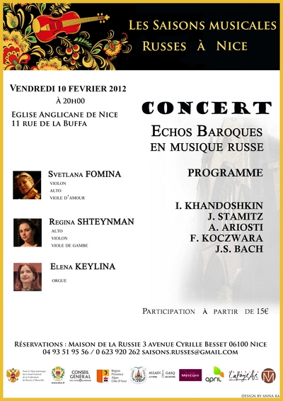 Renseignements & réservations : Maison de la Russie à Nice - 3 avenue Cyrille Besset - 06100 Nice - 04 93 51 95 56 / 06 23 92 02 62