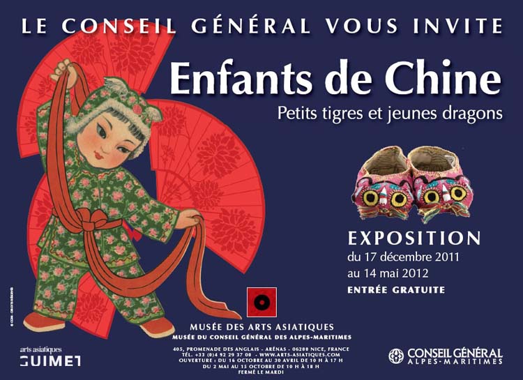 Durant cette nuit, l’exposition temporaire sera "Enfants de Chine : Petits tigres et jeunes dragons" : le thème de l’enfant est fort ancien dans l’art chinois, où l’enfant à une place privilégiée. L’enfant garçon est de toute les cérémonies et la petite fille subit maintes transformations (le bandage des pieds notamment) pour atteindre le canon de beauté chinois. A travers des costumes et objets du quotidien partez à la découverte des enfants de chine.