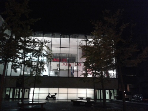 Cette salle, visible aussi de l’extérieur, grâce à ces immenses baies vitrées illumine cette université un peu terne, et lui donne enfin un peu de cœur à l’ouvrage.