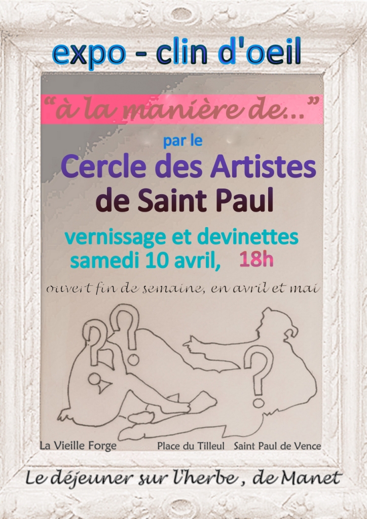 Autour du "déjeuner sur l’herbe" d’Edouard Manet, le Cercle des Artistes de Saint Paul vous convie à sa nouvelle exposition.