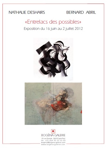Bogéna Galerie présente l’exposition "Entrelacs des possibles", peintures et sculptures, de Nathalie Deshairs et de Bernard Abril du 16 juin au 2 juillet 2012 à la Galerie de Saint Paul de Vence.