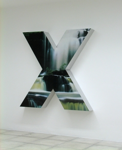 "Les pièces viennent jouer dans l’espace blanc aseptisé de la galerie, comme des fragments rapportés. Aux murs, des formes en aluminium, contenant des extraits de posters romantiques et populaires autrefois muraux, deviennent des enseignes désuètes dans un grand paysage, dont le terrain déshumanisé est organisé par des bribes d’architectures urbaines, aux origines vaguement familières. Le tout contraint le déplacement du regard et du corps à travers la salle, générant une relation physique, esthétique et poétique, entre le lieu, les pièces, et le spectateur." Pierre Descamps, 2012.