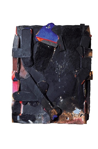 « Ces œuvres sont autant de l’ordre du pictural que de la statuaire, néanmoins il ne pense jamais en terme de sculpture en créant ses surfaces picturales, il n’y voit que des différents niveaux de surfaces qu’il va irradier de couleurs primaires en contrepoint de la couleur noire qui domine dans toute sa production artistique ».