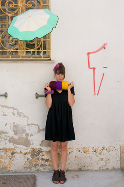 – « Ma grand-mère confectionnait tous mes vêtements et je l’aidais. Dès l’âge de 21 ans j’ai été rattrapée par la couture, mais je voulais réaliser mes vêtements de A à Z, ne pas être techniquement dépendante ». Alors à 19 ans la jeune niçoise s’offre une échappée belle dans la capitale. Sept ans plus tard elle revient au bercail pour y lancer sa propre griffe : « Quand je suis partie de Nice, je maudissais cette ville. Aujourd’hui je la redécouvre, les choses ont évolué ici et puis il y a cette lumière qui inonde mon atelier. Même à l’intérieur, j’ai l’impression d’être à l’extérieur, c’est l’idéal pour travailler, loin des pollutions parisianistes de la mode ».
