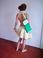 – Puis des plastrons, ceintures, des robes dos nus pour des petites filles modèles qui sont souvent ses propres copines, des accessoires décalés pour « chat beauté », des nœuds papillons pour gentleman « border line », qui se changent en mini-bagues douillettes ou en gros nœuds à cheveux malicieux pour quelques Alice égarées entre le pays des Merveilles et un épisode de « Sex in the city ».