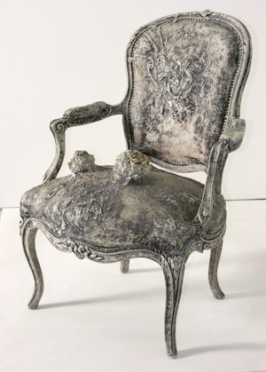 Car dans l’œuvre de ce plasticien pluridisciplinaire la musique a toujours tenu une place prépondérante confirme Mathilde, sa fille « Il était fasciné par le son, il enregistrait tout dans la maison et dans la nature avec un Revox. Vincent Epplay a compilé toutes ces bandes pour l’expo du Palais de Tokyo. Il voulait faire des peintures comme sonne un riff de guitare. En fait, il n’a jamais vraiment aimé la peinture. Il préférait ses amis musiciens, il aurait aimé être une rock star, il en avait le charisme mais il était né avec les odeurs de l’atelier de peintre de son grand-père dans la demeure familiale de Saint Sylvestre » Ainsi à l’âge de 16 ans, Malaval découvre Gene Vincent et Van Gogh, en même temps que les lambretta et les surréalistes. Il commence à peindre. Après un séjour « initiatique » à Paris en 1956, il décide de revenir à la terre et s’installe dans les Basses Alpes avec son épouse où ils élèvent des vers à soie. Est-ce sous l’influence de cette magnanerie ou de celle des Carnavaliers niçois (pour lesquels il dessinera quelques chars), mais dès 1961 Malaval s’attaque à des motifs en relief faits à base de papier mâché accouchant d’une série d’œuvres fantasmatiques, d’un alien avant l’heure, qu’un enfant qualifiera un jour « d’Aliment blanc » « C’est après ma naissance et celle de mon frère qu’il s’est mis a développer ce projet envahissant au sens propre comme au figuré. Il ne faisait pas de la récup, tous les objets qu’il métamorphosait, infectait, avaient une valeur personnelle : le violoncelle de ma mère, le fauteuil de la tante, le cadre de l’oncle. Faire proliférer cette mycose blanchâtre et fongicide sur des objets familiers, sur lui aussi, c’était aussi sa façon d’exorciser sa peur de l’enfermement. Farouchement indépendant, il refusait les étiquettes. Et s’il fréquentait Ben ou Arman il n’aimait pas le label Ecole de Nice ni l’attitude de certains envers le marché de l’art »