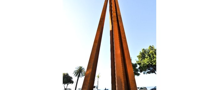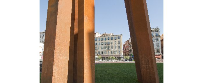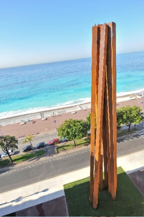 30 mètres de haut, 55 tonnes, un socle de 40 tonnes, telles sont les mensurations de l’impressionnante sculpture inaugurée début juin à Nice. Œuvre monumentale offerte par Bernar Venet, elle commémore le rattachement de Nice à la France, dont c’est le 150e anniversaire cette année, en symbolisant les neuf vallées qui forgent le comté de Nice. D’où son nom « Neuf lignes obliques ». Une œuvre qui a nécessité plus de deux mois de travail et plus d’un kilomètre de soudures, d’une valeur marchande de deux millions d’euros et réalisée par le cabinet Greisch, concepteur du viaduc de Millau… Ce qui en fait la plus grande d’Europe. Pourtant, Bernar Venet considère que c’est à lui que l’on fait un « magnifique cadeau », en lui permettant d’installer cette œuvre sur le toit du parking Sulzer, dans un environnement paysager de 1 500 m2 donnant sur la mer. L’artiste ne compte d’ailleurs pas s’arrêter là. Outre l’arc du Jardin Albert Ier, il souhaite déplacer les Lignes indéterminées situées non loin de la galerie des Ponchettes dans le parc du MAMAC et les remplacer par une pièce plus imposante encore, avant de terminer le parcours par une autre pièce monumentale, celle-ci consacrée à l’angle. Droits, courbes, angles… Tout ou presque, dans l’œuvre de Bernar Venet, est histoire de lignes et de mesures. Ou d’absence de, dans le cas des lignes indéterminées.