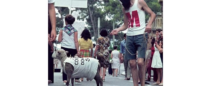 Symbole de la stupidité publicitaire, au service de l’argent, conditionnement de l’homme par les médias, le chien de Pavlov, le mouton de Panurge. Panneaux d’expression libre, interviews, saccage d’un véhicule, déambulation du mouton...