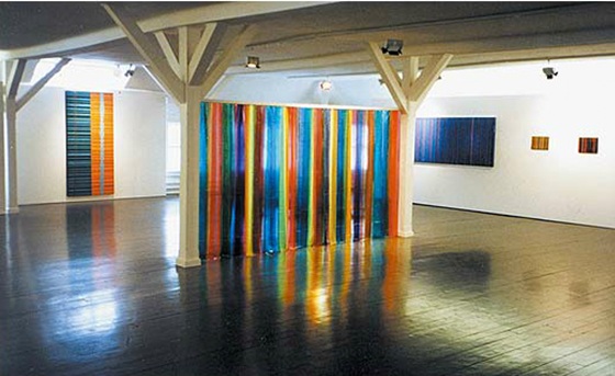 « Cédric Teisseire est connu pour ses tableaux composés de lignes colorées qui tombent en ligne droite et qui forment comme des rideaux improbables jetés sur la grande cuisine du visible dont on s’attend à découvrir en général sur un tableau tel ou tel aspect. D’une certaine manière, ces toiles nous laissent en effet à la porte du visible en nous barrant le regard et en décevant notre attente. Mais, dans le même temps, elles nous offrent une « image » particulière, celle de cette déception même. C’est sur elle que Cédric Teisseire construit son œuvre et ce n’était pas un pari facile. Car il prend à rebours nos attentes et nos certitudes et réussit à nous faire comprendre qu’elles valent sans doute quelque chose mais qu’elles sont en nous comme des obstacles à des plaisirs inédits. Ainsi, c’est bien un rideau que forment ces coulures verticales, ce que les restes de coulures confirment qui forment comme une feuille fine et plate. Ce signe d’une imperfection est la confirmation du procédé, mais ce rideau est en lui-même une réalité particulière. Elle est absolument picturale et est en même temps d’un autre ordre. Ces coulures constituent en tant que telles, une sorte d’entre-deux monde purement fictif, celui-là même de la fiction qui nous hante en ce qu’elles ne relèvent ni de la peinture au sens habituel ni de la réalité au sens de ce qui serait hors du tableau.
