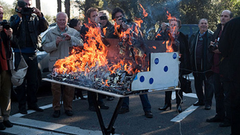 Avant que la crèche de l’Ecole de Nice de Jean Mas ne parte en fumée eut lieu la lecture d’un certain nombre de « Déclarations » sur l’idée d’une fin rituelle de l’Ecole de Nice. Voici un extrait de la mienne :