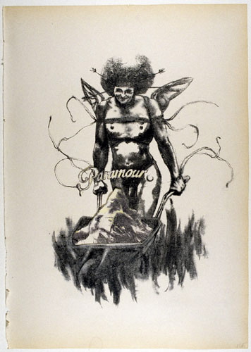 « J’ai toujours dessiné et j’y suis resté parce que c’est là où j’ai le plus de liberté finalement. Au début je dessinais de façon stakhanoviste alors que ce n’était pas la tendance. Maintenant pour une question de temps je ne produis qu’une vingtaine de dessins par an car je refuse de déléguer ou de faire des séries pour répondre au marché. En dix huit ans je n’ai travaillé que par désir. Du coup j’ai perdu du temps mais c’est mon luxe et ma fierté. Plus récemment je me suis mis à la sculpture, j’ai fait une baguette magique de huit mètres en acier vert pour « le Vent des forêts » un centre d’art à ciel ouvert dans la Meuse et prépare deux sculptures avec la Manufacture de Sèvres. Je créé aussi des objets comme les seize cockring en verre exposés à la Conciergerie. Tous ces objets sont l’extension en 3D de mes dessins tout comme moi. »