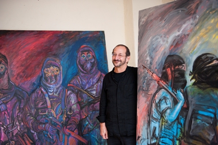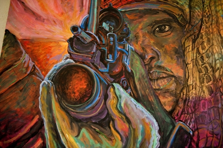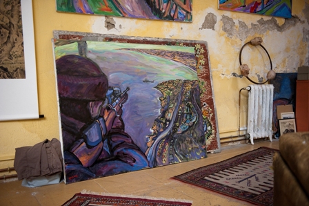 Ce qui bouleverse dans le travail de Jeffrey Hessing c’est la jonction entre la beauté des natures, le comblement des grandes villes et la fureur d’une de ses dernières séries, « War ». L’art de la guerre, selon l’artiste, dérive d’un besoin rebelle de retranscrire sa vision des personnages et des cadres. On retrouve en premier plan les « French Soldiers en Afghanistan » suivis des « Palestinian Gunmen », sous les regards des « Femmes en Bagdad ». Depuis 8 ans déjà, cette série fait le tour de ses vécus, de ses regards de photos publiées dans les journaux mondiaux au temps des guerres actuelles. Car il aime les contrastes, autant dans la vie que dans les peintures. « Je l’ai fait pour toucher les gens, mais je suis contre la guerre, je suis un vieux hippie ». Jeffrey Hessing laisse naître dans cette démarche, des couleurs fortes sur la toile : le rouge, le bleu, le violet, la force rejoint le parcours d’un artiste qui peint ce qu’il ressent.