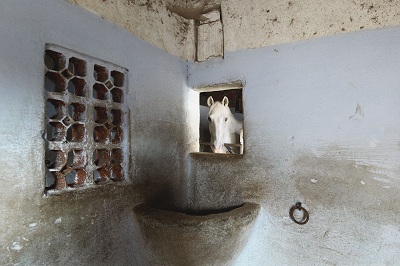 J’ai approché les chevaux lusitaniens au rythme de leur vie, avec retenue. A l’écoute de l’exercice quotidien et dans le flux des ajustements mutuels trouvés avec l’écuyer. Par des images, j’ai tenté de traduire l’émerveillement et le trouble qu’ils m’inspirent. »