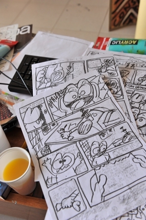 A douze ans, il tenait son premier ordinateur entre les mains. Un univers visuel qui l’a forcément marqué. Plus tard viennent les premiers essais de celui qui allait devenir son personnage star : la chat rose. « Je m’essayais alors à l’utilisation de la tablette et c’est plus compliqué que de tenir un crayon ! Même si le gros avantage, c’est de pouvoir faire contrôle Z quand tu n’es pas content de ce que tu as fait. » Déjà coutumier des encres de Chine et de la peinture à l’huile, Jérémy Taburchi s’amuse ensuite à peindre son chat méchant, en 2004.