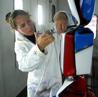 Le résultat l’enchante. La matière a fondu en se tordant sur elle-même. Celle qui enfant tortillait sans cesse des petits bouts de papiers vient de mettre au point un de ses process de fabrication : le Wrapping qui lui servira à conférer toute sa sensualité à ses sculptures bonbons. Une autre étape lui permettra d’offrir à son travail la lisibilité et le souffle qui lui manquaient. En 2007 elle réalise avec le concours de la Fonderie JLB son premier modèle géant en aluminium.