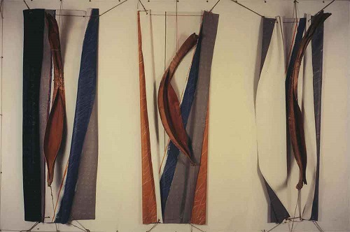 Les murailles se façonnent en « murs », « pyramides » et « tour s ».. de Babel. Les « architectures » sont en apparences diverses –elles se nomment Terre-Mer-Laisse, Mesure des Terres - et les expositions se succèdent. Par leurs formes et leurs matières, les œuvres renouvellent l’inspiration initiale des Ecorces (1984-1985).