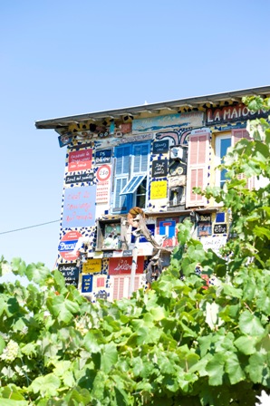 Ben nous balade dans son jardin extraordinaire. Côté cours, on passe devant la façade de sa maison de Saint Pancrace intégralement recouverte d’œuvres. «