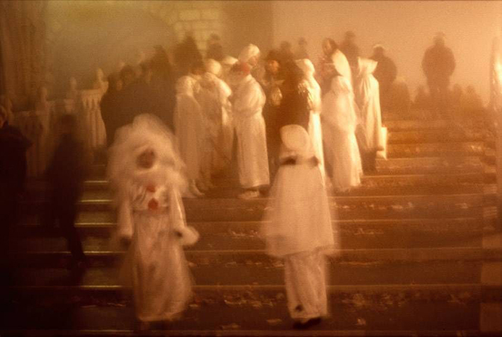 Son travail s’intensifie dans une belle série vénitienne réalisée en quadrichromie : des personnages de carnaval dans un clair obscur fantomatique ajoutant à l’atmosphère magique de la ville mystérieuse.