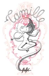 Pas étonnant que Fafé, notre croqueuse de 40 ans qui commença en recopiant Pifou poche avoue un faible pour Charles Shulz, le papa de Snoopy ! Mais elle se reconnaît aussi au travers de dessinateurs contemporains, Schlingo, Julie Doucet et, de genres en vogue comme les mangas d’auteurs ou la BD autobiographique. Elle travaille entre 18h et Minuit, en s’inspirant du quotidien, de ses rêves ou cauchemars. Crayonne puis encre à la plume. Un travail parfois mis en ligne sur son propre blog (http://fafe.m.free.fr/madamefa-blog). Après avoir signé plusieurs ouvrages dont « Monsieur Zéro » elle vient d’auto-publier chez Groinge « Camille » quatre histoires poignantes, quatre corps à cœurs en bichromie rouge et noir.