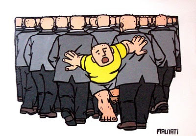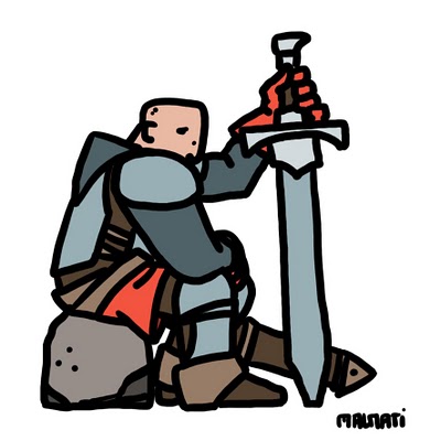 Et c’est de cette façon que j’ai trouvé ce que j’appelle le « dessin en puissance » un peu pompeusement (rires). C’est le côté « nietzschéen » de la démarche, c’est-à-dire un dessin-type qui existe plus par son potentiel que par ce qu’il montre réellement. C’est dans le trait de contour très épais, - finalement assez vague -, que se situe la limite spatiale… et puis les aplats de couleur donnent du sens ; et c’est tout. Après, l’image sert à exprimer ce que je tend à exprimer et cela me suffit amplement.