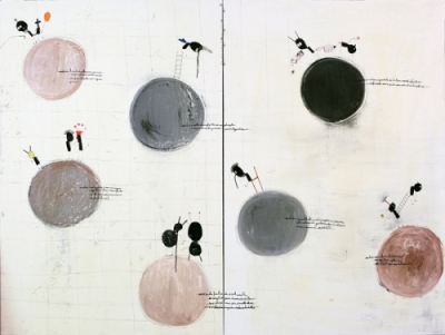 Ses tableaux et ses dessins révèlent une enfance perdue et plus jamais retrouvée ; peut-être réélaborée, digérée et transformée en chaos moderne et plus qu’adulte, mais qui conserve la force inarretable du mauvais garçon exclus de l’école, il y a tant d’années de cela. Les toiles semblent parfois des tableaux d’école barbouillés par dépit, car il n’existe pas de lignes ordonnées dans la tête d’un rebelle.
