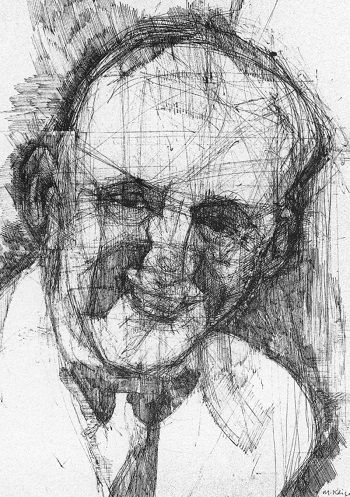 Puis, datant de la dernière année, « Bild 0038 » et « Bild 0039 » (p. 25), par leur inachèvement même, sont le reflet de la nature essentiellement mouvante et protéenne du monde. De la première, où la symétrie d’ensemble et les colo¬ris concourent à une certaine froideur, émane un regard d’une lucidité apollinienne ; facette d’un autoportrait que s’empresse de corriger la seconde, d’où toute droite, toute raideur, toute gravité sont bannies. C’est l’aspect ludique et dionysiaque de la création, second volet d’un testament riche d’espoir, auquel participe une palette déroutante et enjouée. L’enjeu de l’entreprise du théoricien n’était pas une codification positiviste de la réalité, mais un dépassement de la diversité du signe pour atteindre à l’unité sous-jacente.