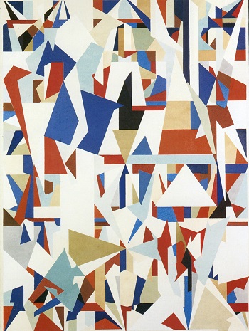 Souvent les couleurs ont la même valeur, aucun « objet » ne se détache sur le fond. L’abstraction traduit une émotion intellectuelle et un état psychique.